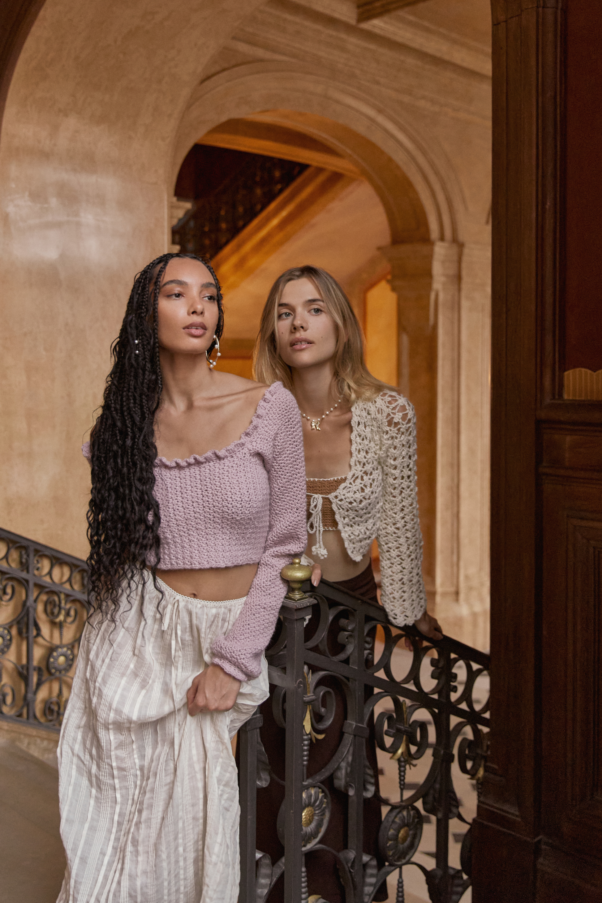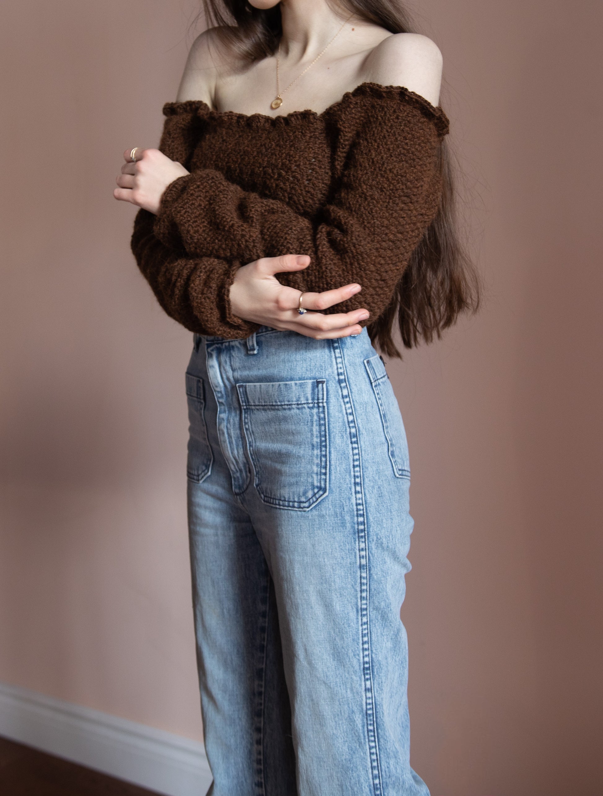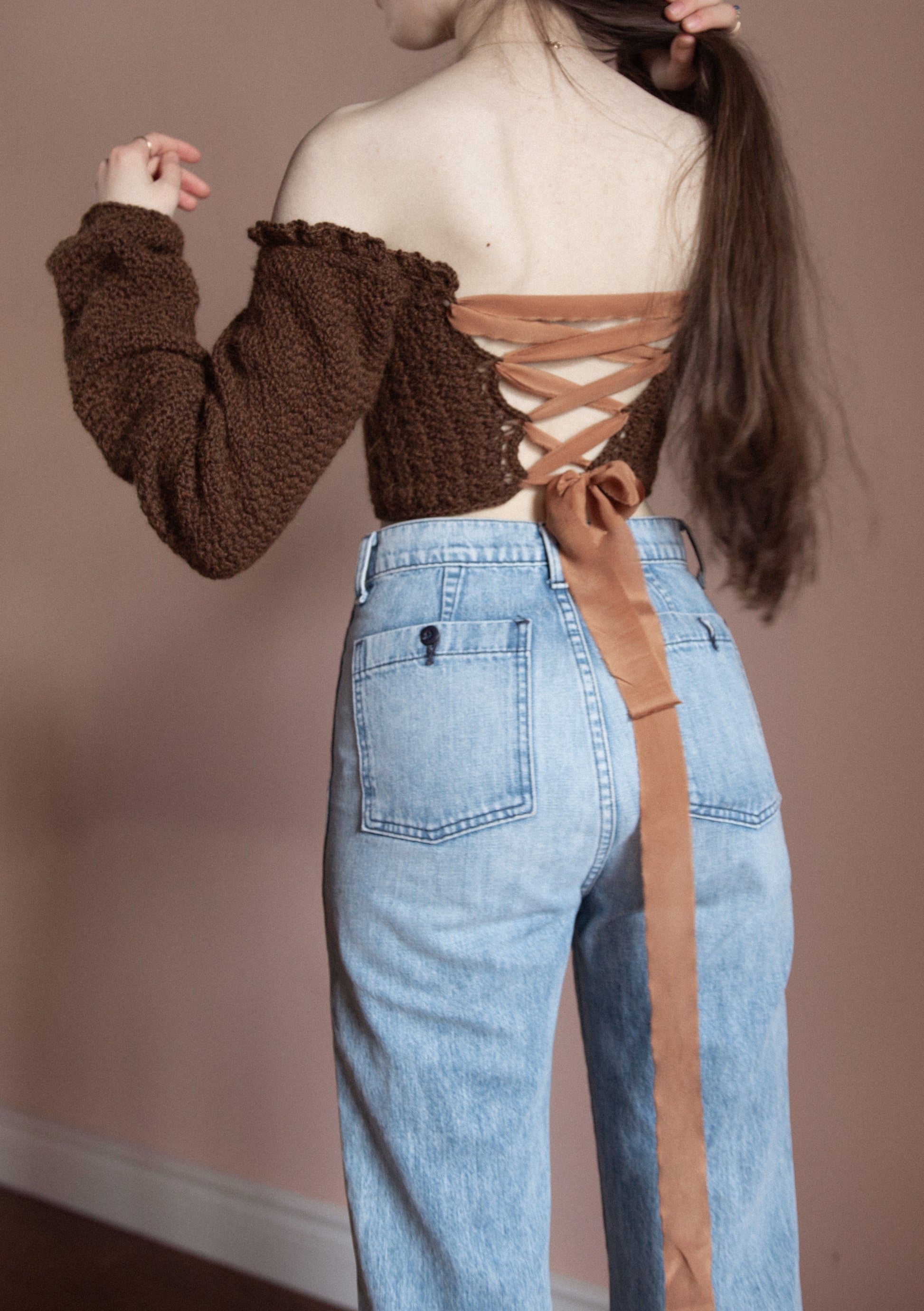 Der Violeta ist ein eleganter, femininer Pullover mit verstellbarem Korsettrücken, Rüschen und Puffärmeln. Ziehen Sie den Violeta-Pullover für maximale Vielseitigkeit hoch oder runter.