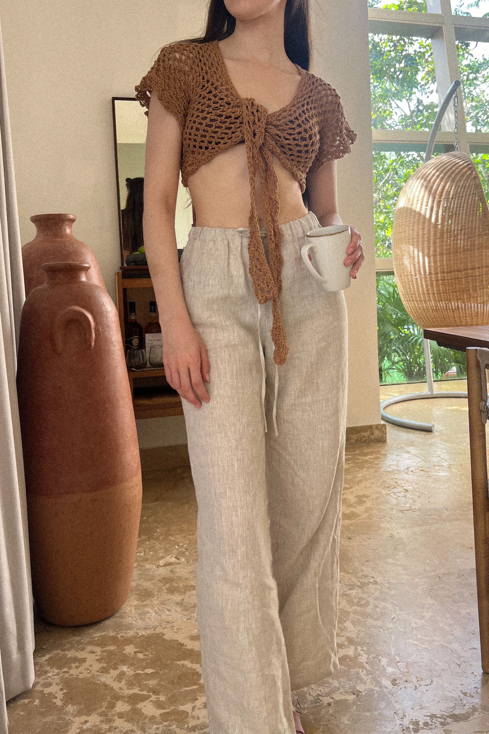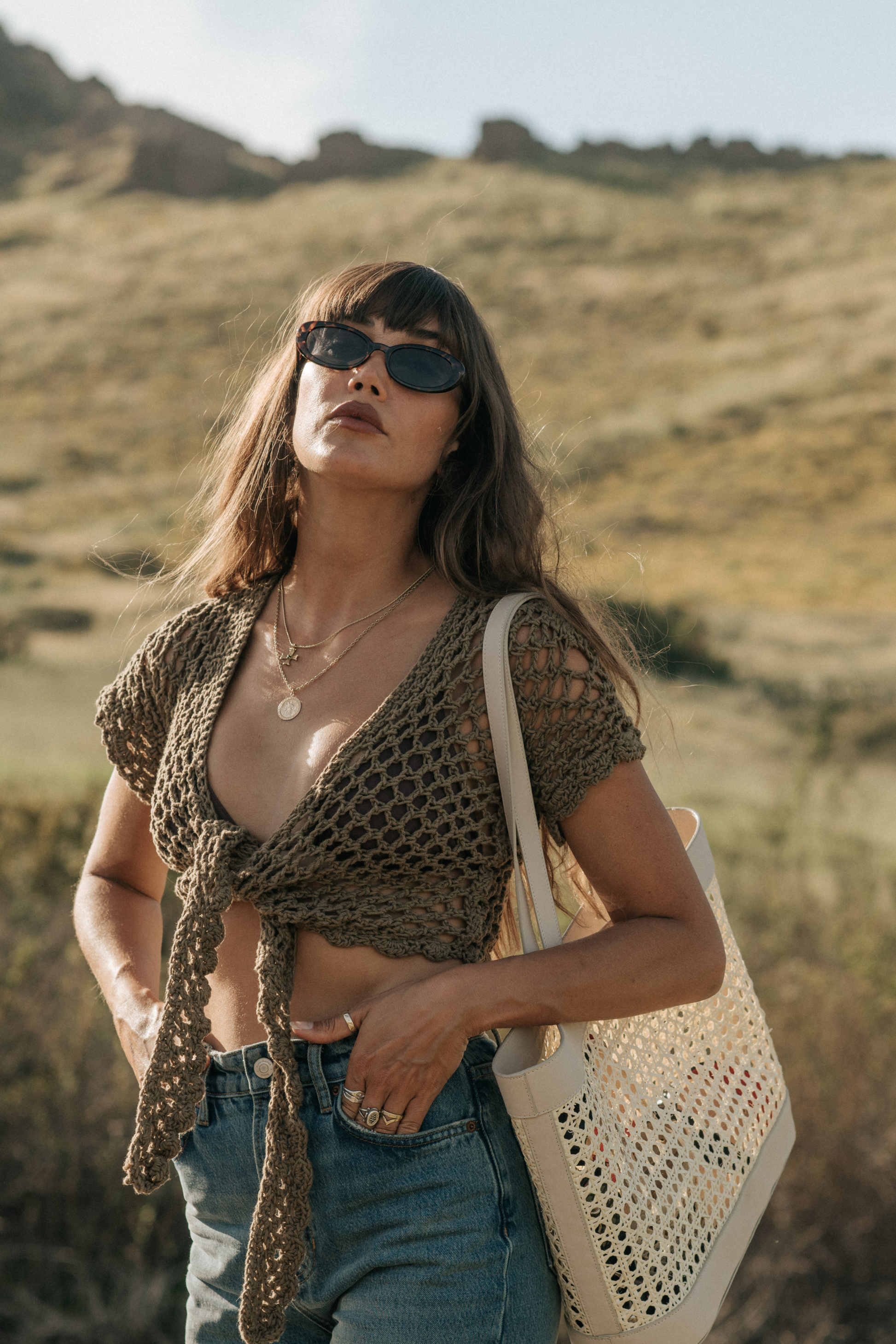 Crafted from luxurious organic cotton, the Agave top features mesh detailing, a customizable wrap style, and graceful butterfly sleeves - the perfect top for a summer day. Intricately designed for beachside lounging or layering over sundresses, the Agave top blends coastal style with natural elegance.
