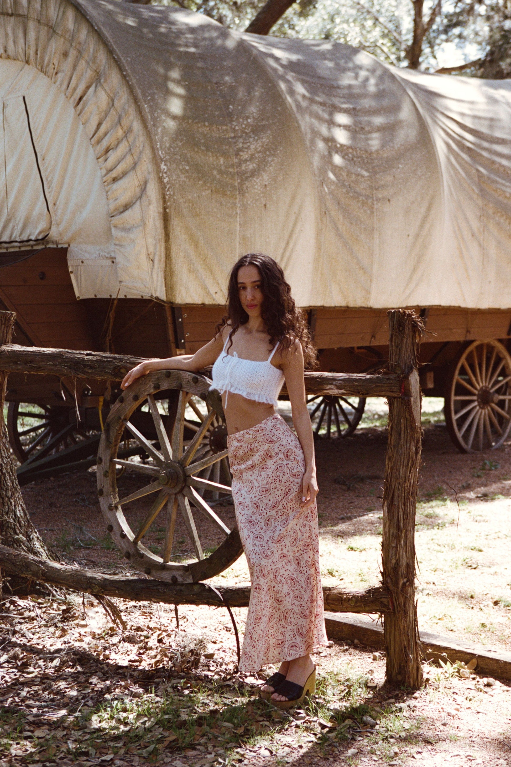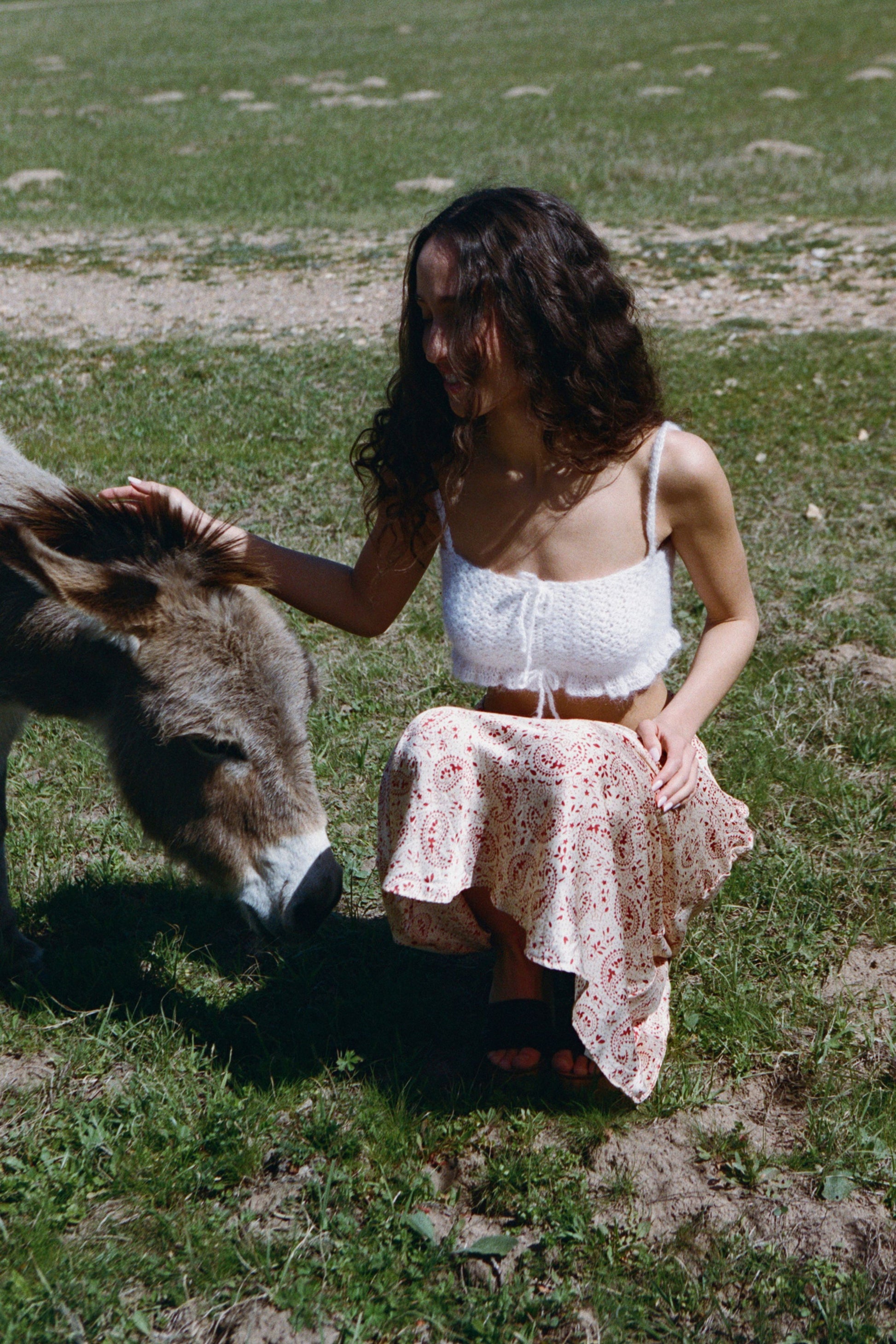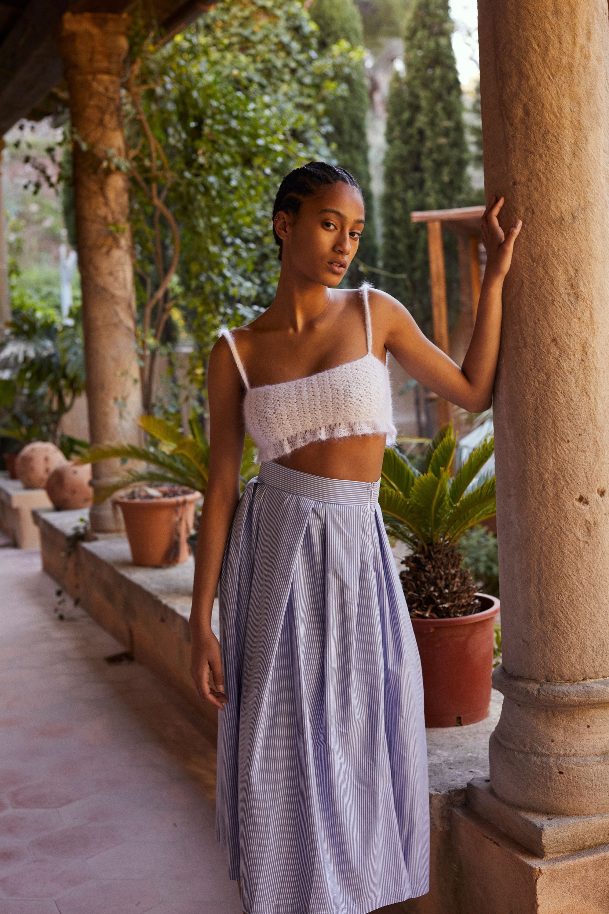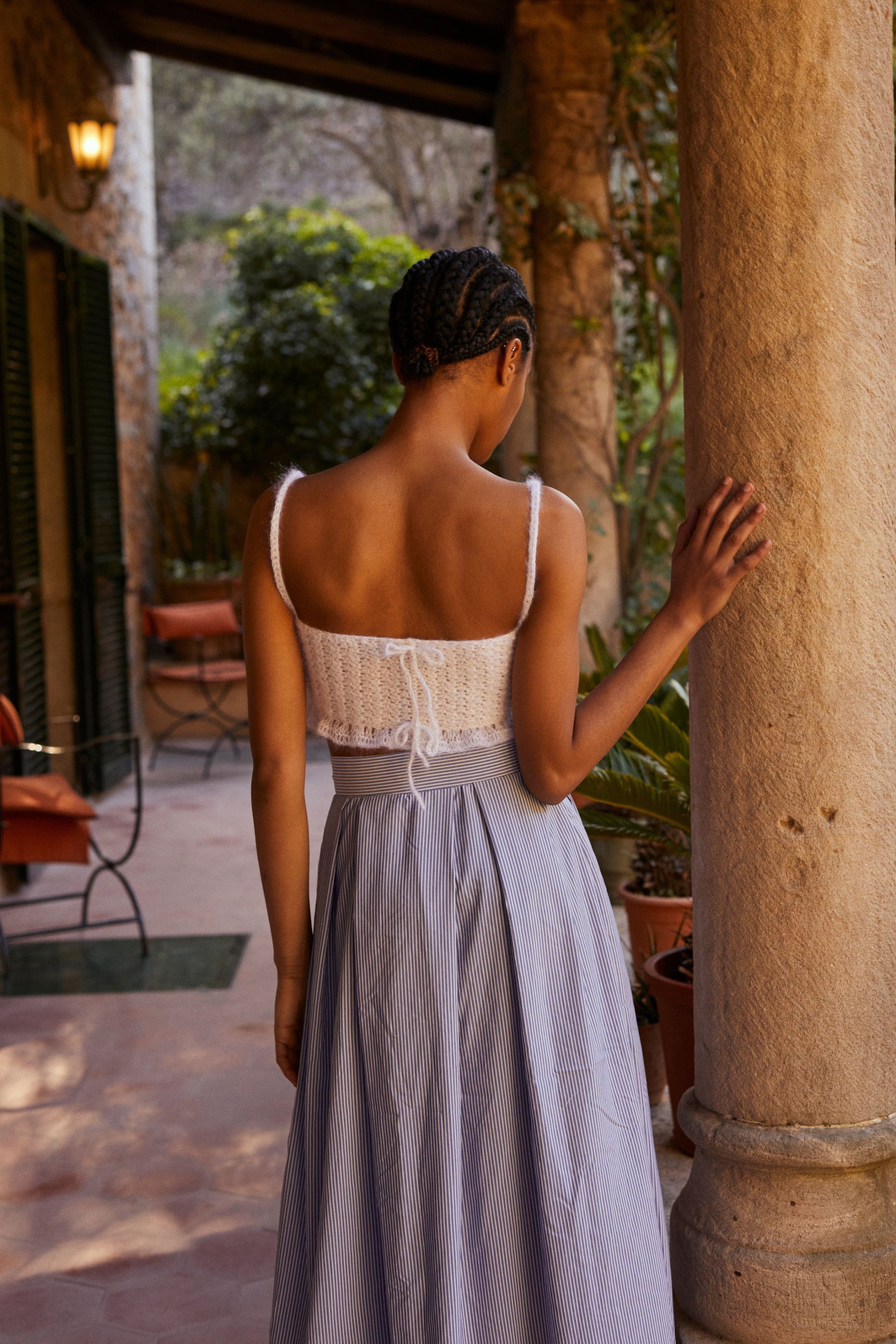 The Heloise is a soft, effortlessly feminine bandeau top in dimensional silk and mohair. Featuring a delicate ruffle trim and a full back, the Heloise is reversible and can be worn with the bows at the front or back. Pair with the Clarice short for the full ensemble, or style with whatever you'd like.