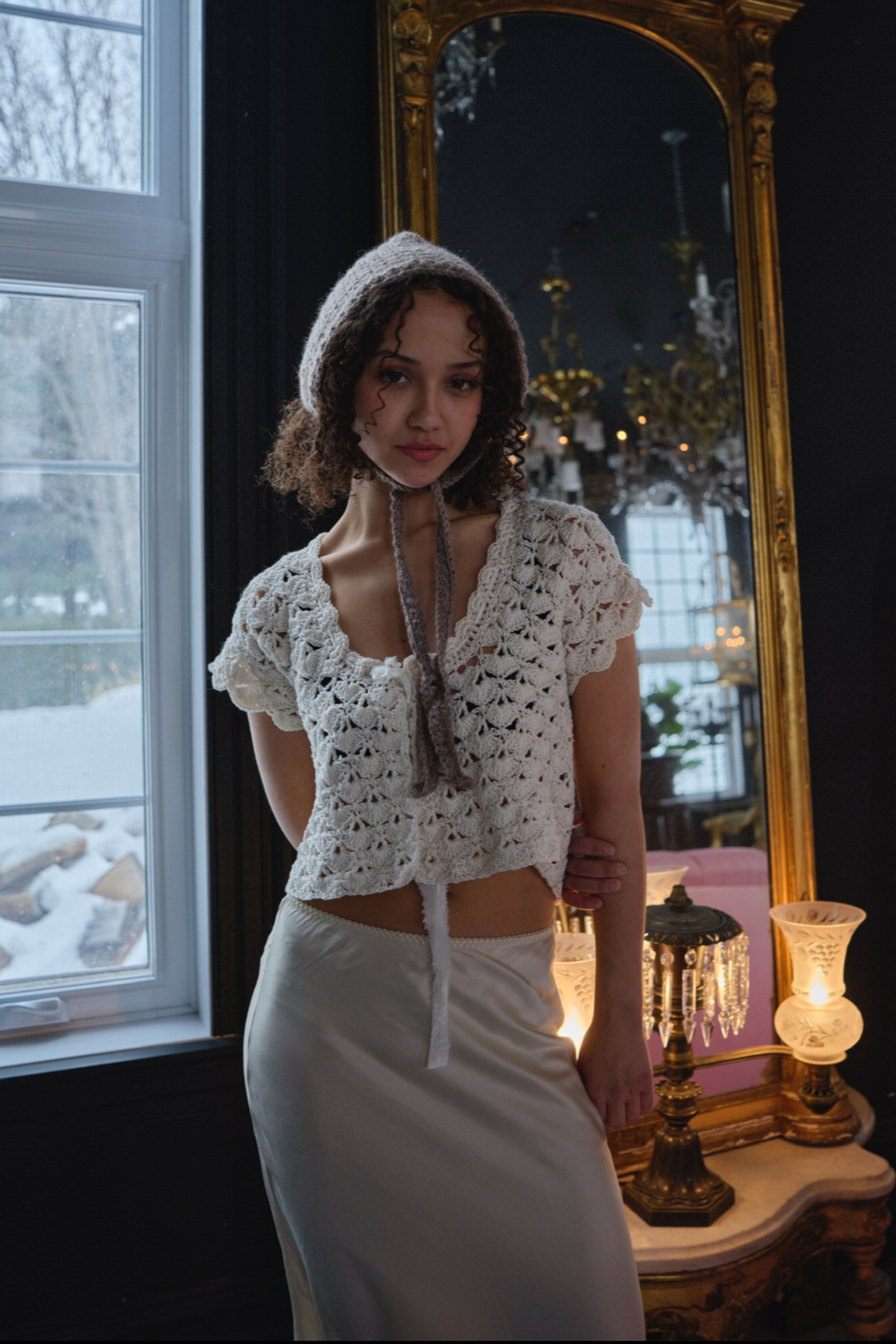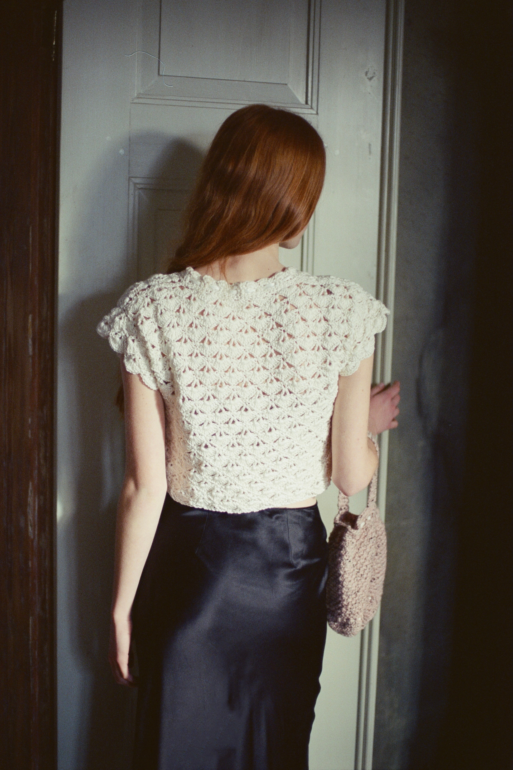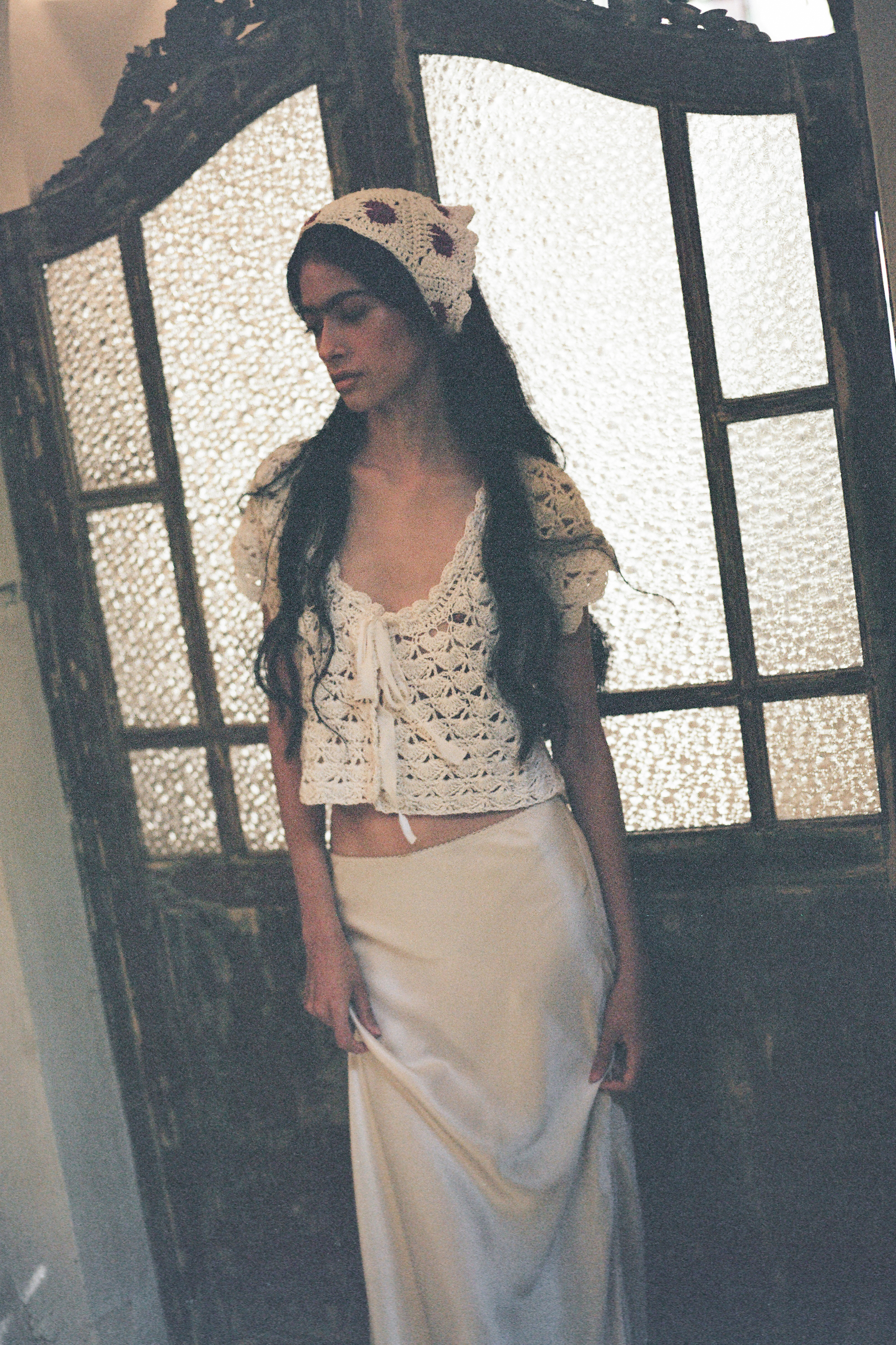 L'Imogen est le top superposé parfait qui transcende les saisons. Fabriqué à partir de 100% coton pima, avec des rubans de charmeuse de soie de mûrier de couleur ivoire.