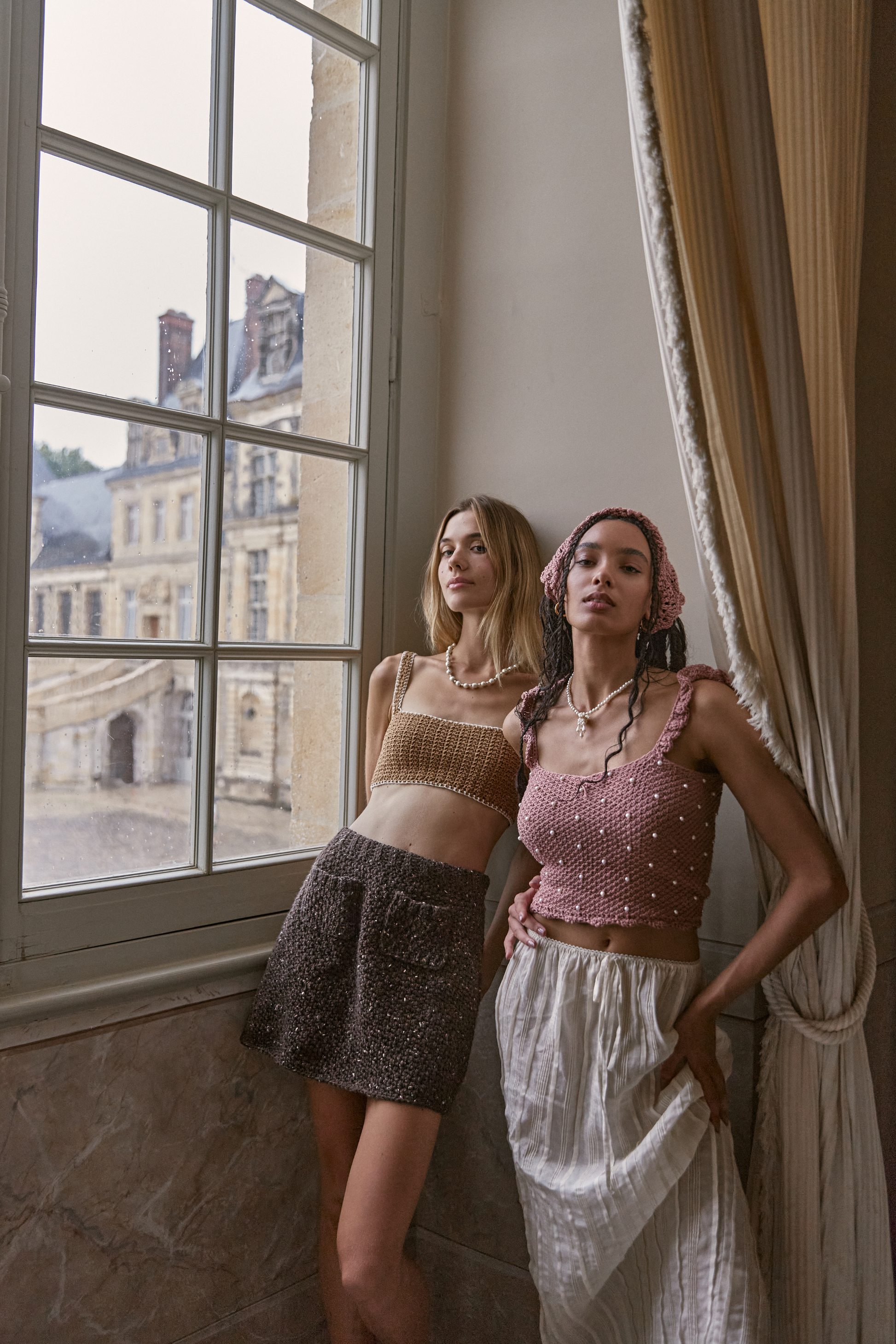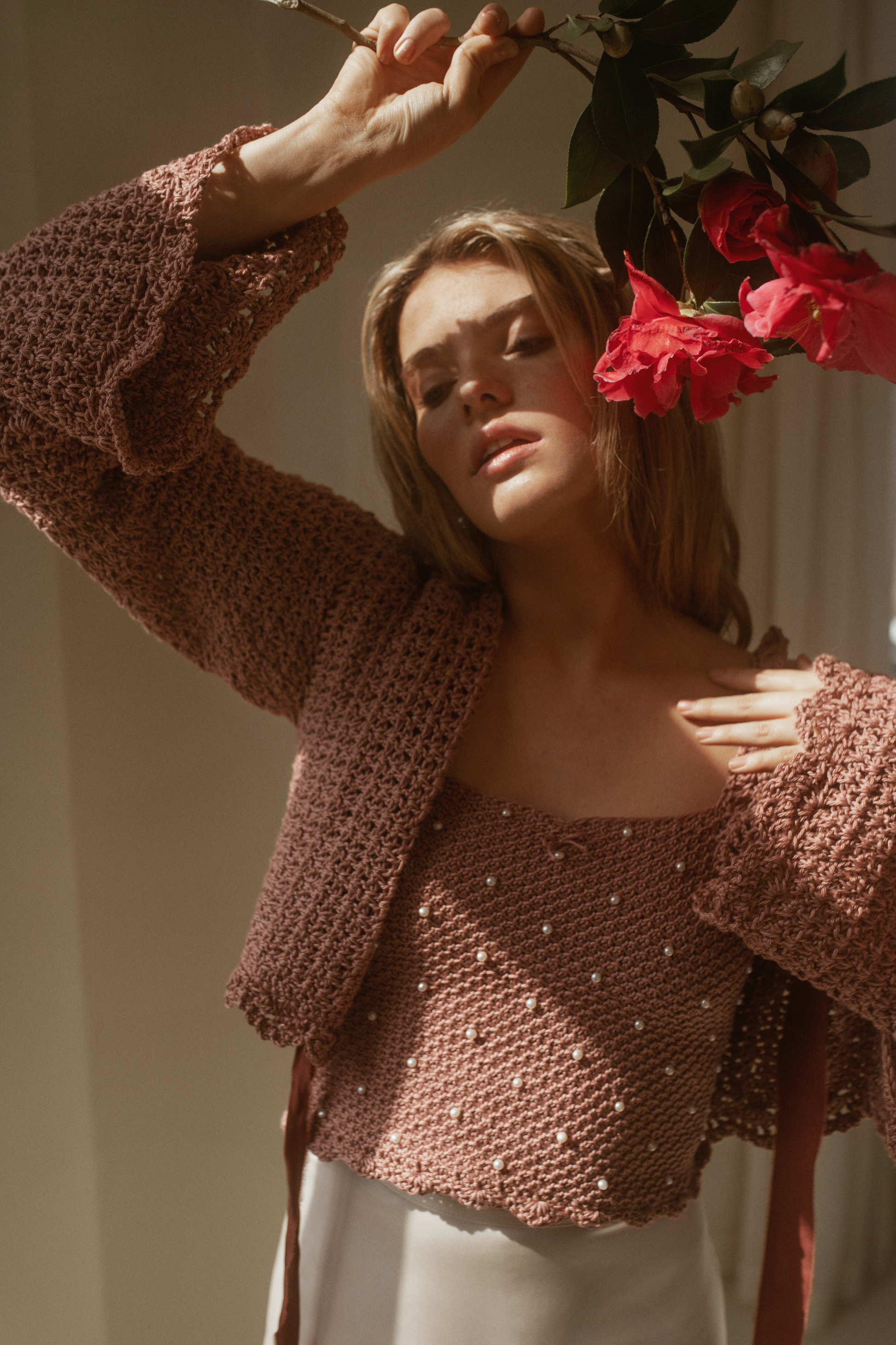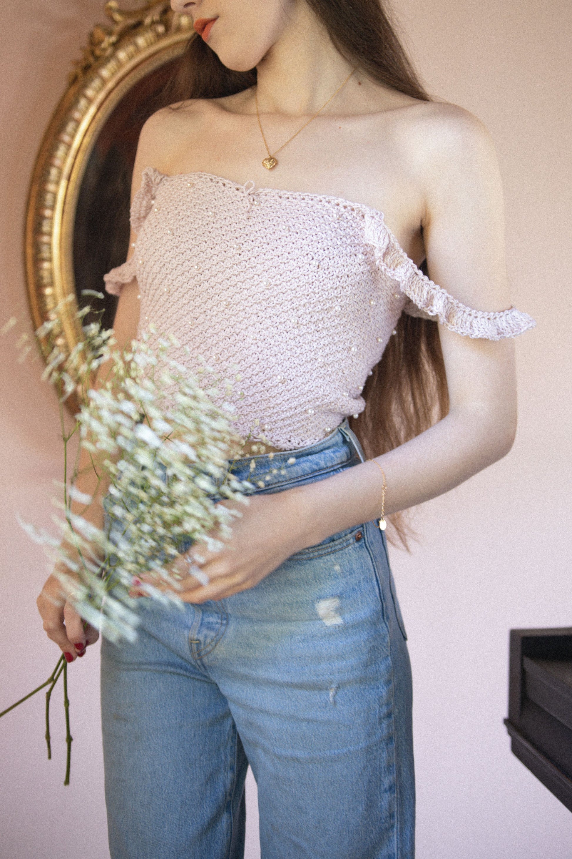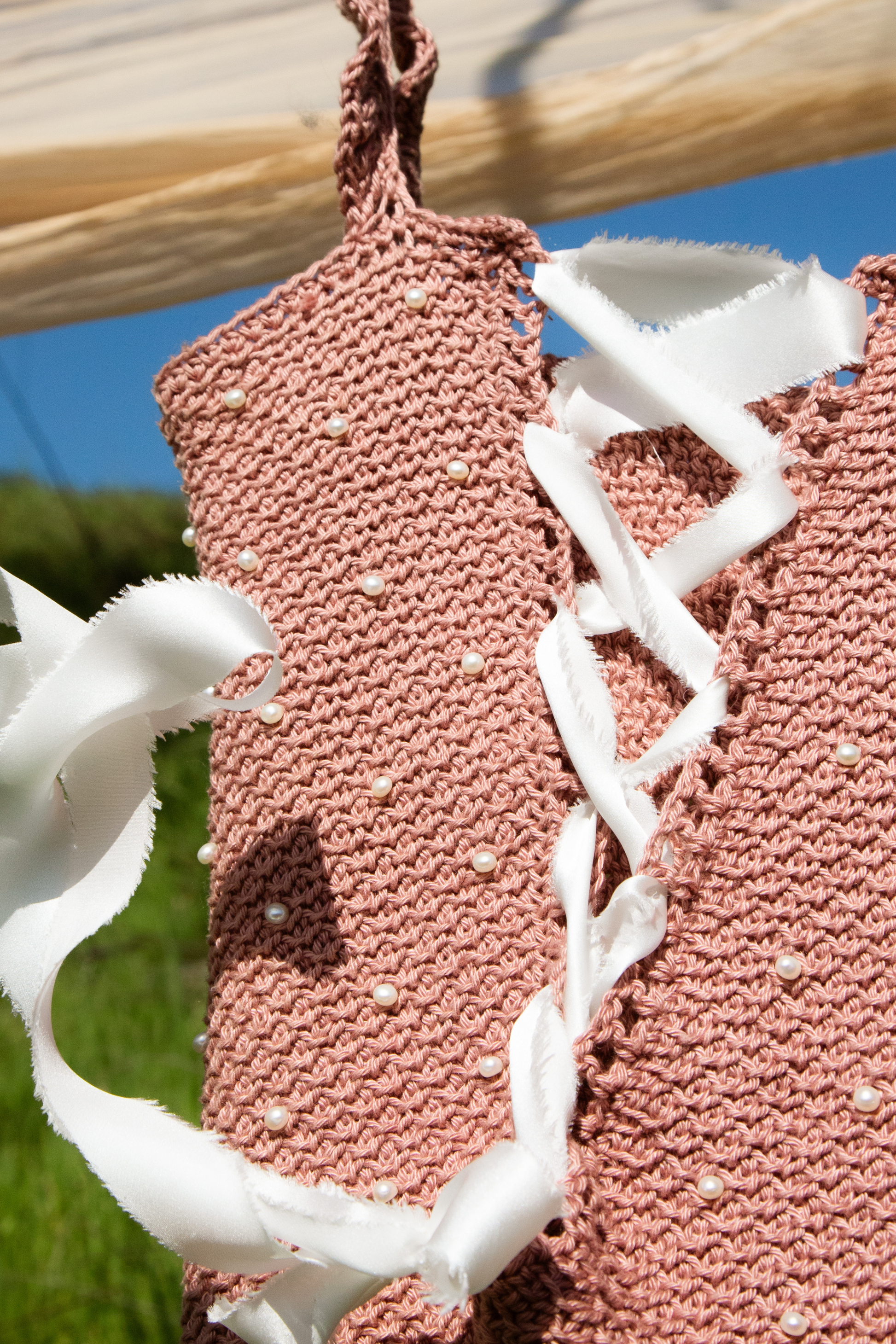 Dispose de perles d'eau douce naturelles, cousues individuellement à la main sur le corsage. Chaque détail a été soigneusement perfectionné pour créer la Mariella.