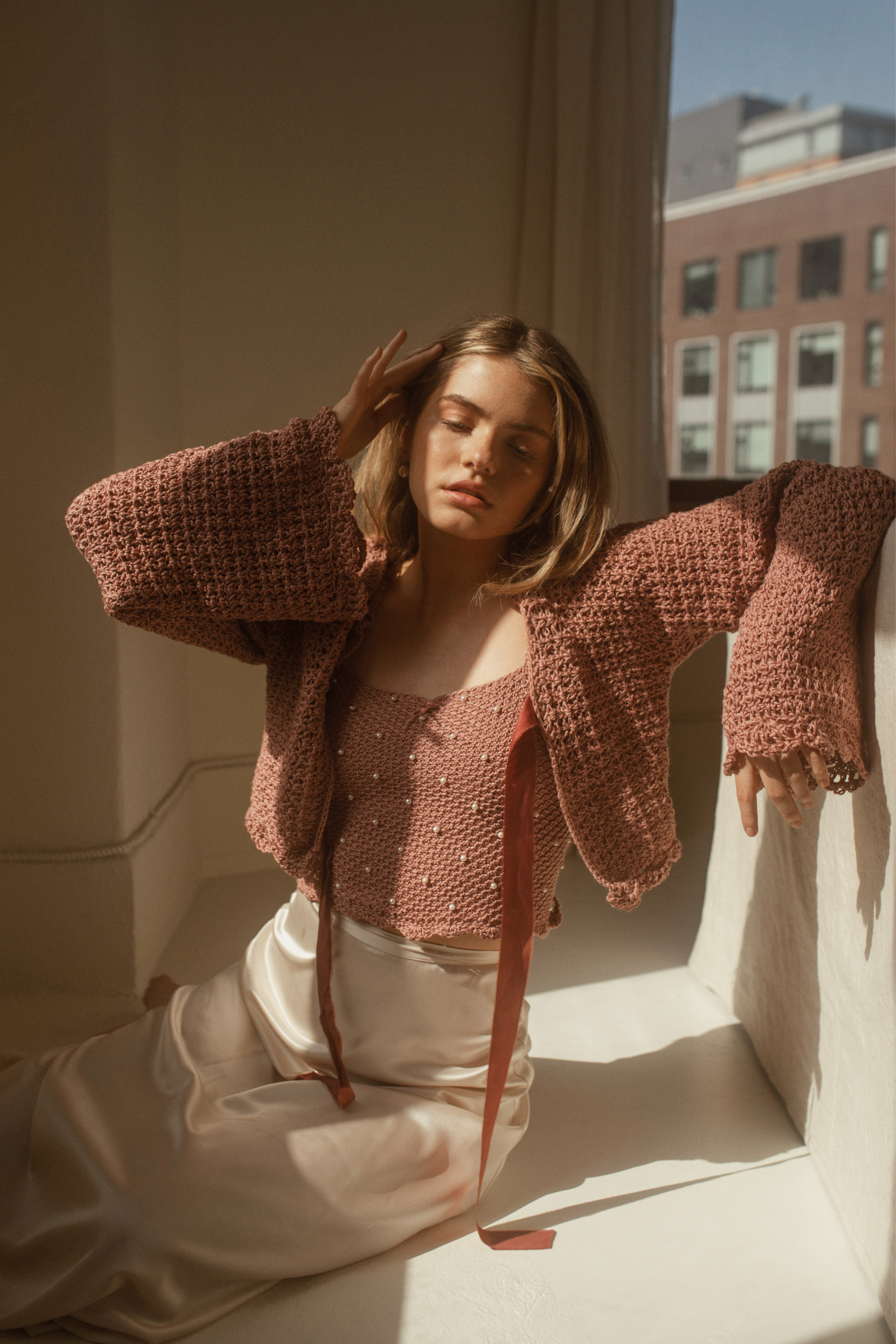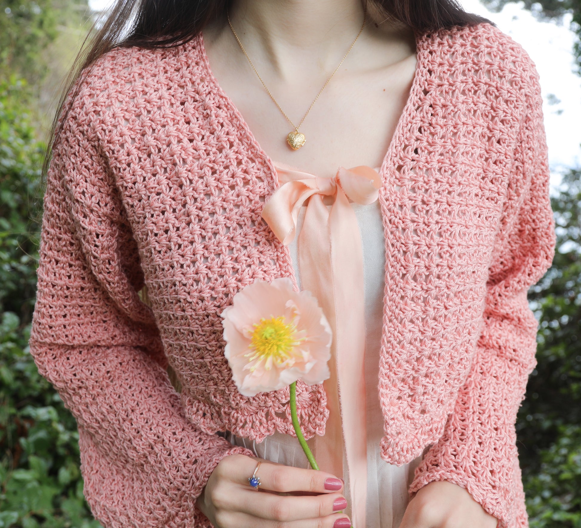 Rehaussé par des détails fantaisistes et des rubans de charmeuse de soie, botaniquement teints à la main ici au Canada.