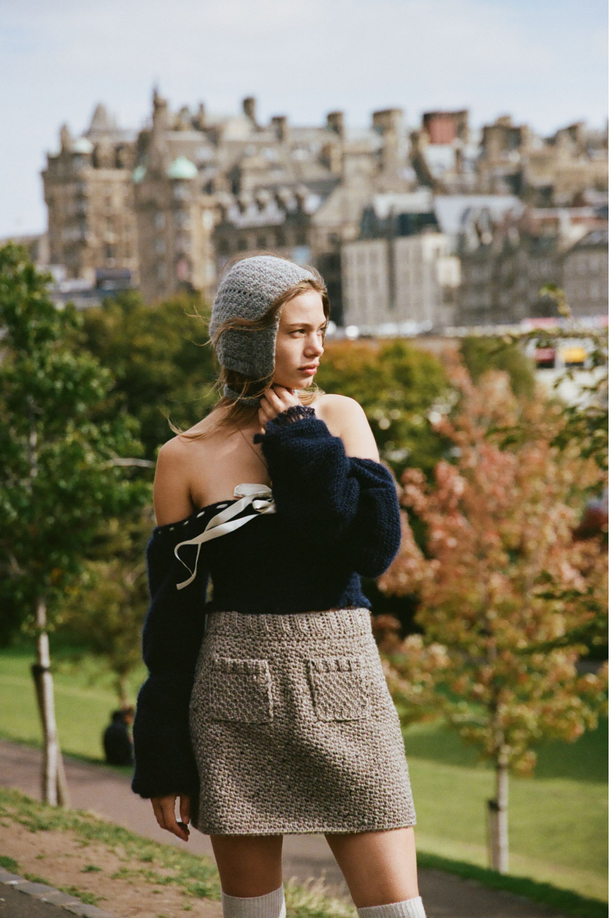 Designed to bring a touch of elegance to winter wear for even the coldest of days. Inspired by timeless vintage glamour, the Aurore bonnet is rendered in a rustic blend of wool and alpaca.