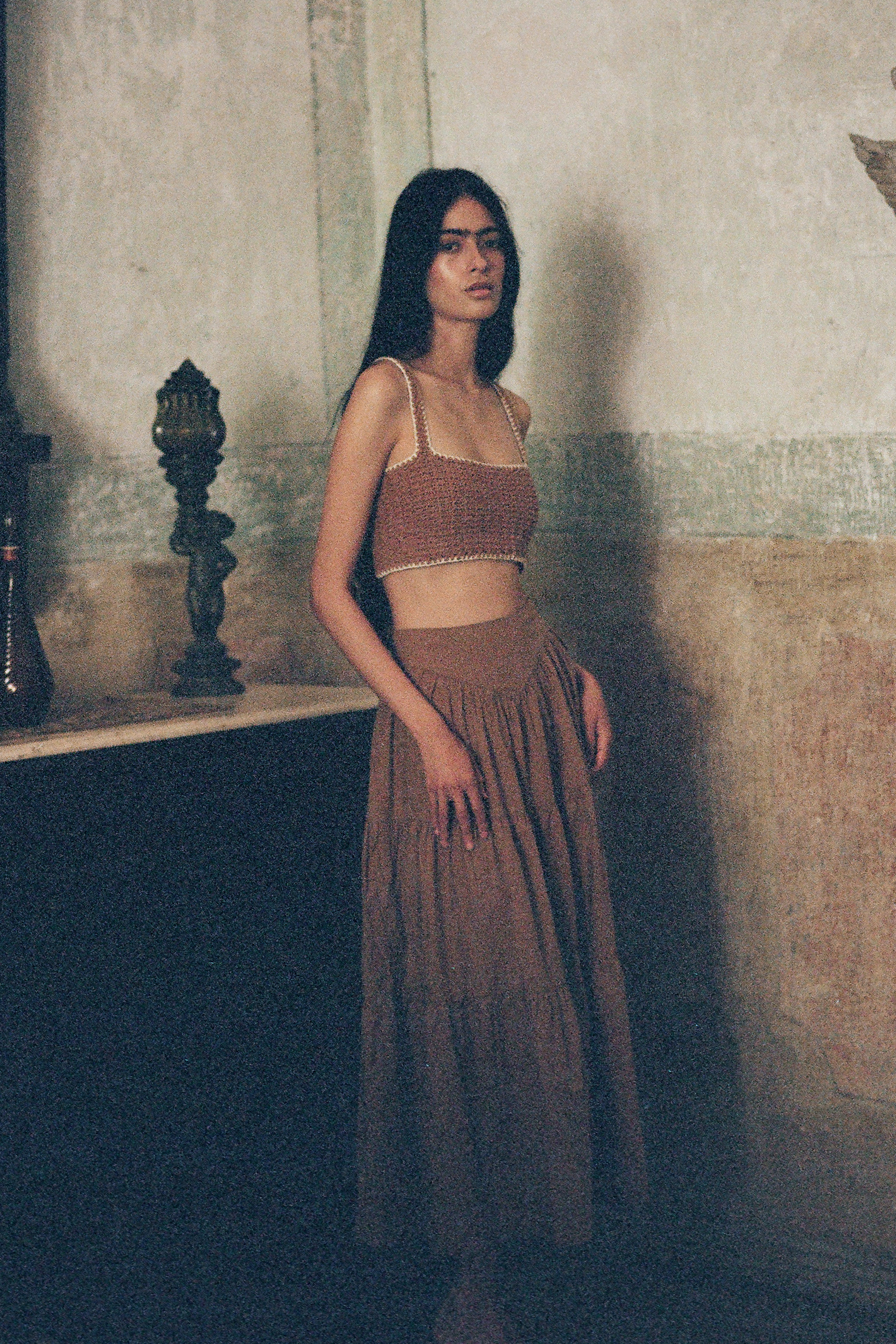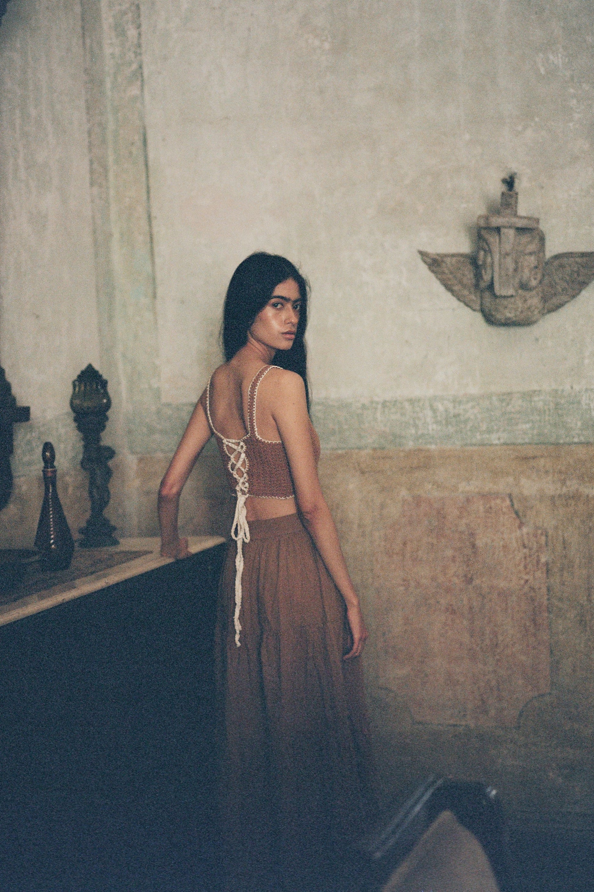 In 100% organic colourgrown cotton, the Tierra top offers a unique blend of vintage-inspired style with versatile wearability. Pair with jeans, skirts, or trousers - the Tierra makes any ensemble stand out. Features a square neck, adjustable corset back, and blanket stitch trim.